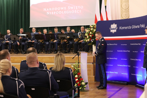 Doradca Prezydenta RP przypomniał jak zmieniała się ta sytuacja, gdy w 2021 r. rozpoczęła się reżyserowana przez białoruskie i rosyjskie służby specjalne operacja „Śluza” na polskiej granicy z Białorusią, skąd płynęło bardzo wiele zagrożeń dla bezpieczeństwa wewnętrznego państwa oraz bezpieczeństwa i porządku publicznego. W 2022 r. zaczęła się natomiast regularna wojna na Ukrainie, co zrodziło nowe zagrożenia. – To Wy, jako funkcjonariusze Policji stanowicie najważniejszą część tego istotnego systemu bezpieczeństwa państwa – zwrócił się do zebranych Krzysztof Wacławek. - Odpowiadacie też Państwo za bezpieczeństwo obywateli. W 2018 r. było w naszym kraju zdecydowanie spokojniej. Dzisiaj słowo „niepodległość” nabiera szczególnego znaczenia. Wszyscy musimy pamiętać, że niepodległość nie jest nam dana raz na zawsze. Niepodległość to wartość najwyższa, o którą musimy zabiegać każdego dnia pełnionej przez nas służby w każdej formacji.