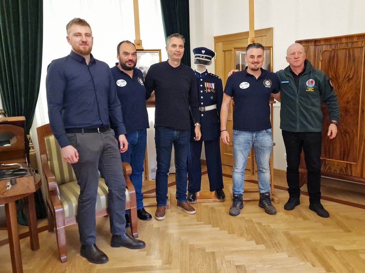 Greccy goście z IPA Fokida Region: Aris Zomenos, Georgios Velentzas i Giannis Lambadaris, przyjechali do Polski na zaproszenie Regionu IPA Lublin i Lubelskiej Grupy Wojewódzkiej IPA, aby podpisać porozumienia o współpracy. A że wizytę w naszym kraju zaczęli od Warszawy, to postanowili odwiedzić także policyjne ekspozycje, przygotowane w Wydziale Edukacji Historycznej Gabinetu Komendanta Głównego Policji. Czasu mieli niewiele, bo goniły ich kolejne wizyty, przygotowane przez warszawskich ipowców, ale to, co zobaczyli w naszej siedzibie tak przykuło ich uwagę, że spędzili u nas nie 15 minut, a prawie godzinę. Wszyscy, łącznie z tłumaczem z BMWP KGP podkom. Dominikiem Szewczykiem, z zainteresowaniem wysłuchali opowieści o dziejach Policji Państwowej, ciekawostek na temat mundurów przedwojennej formacji, elementów wyposażenia i uzbrojenia. Ogromne wrażenie zrobiła na gościach historia Zbrodni Katyńskiej i największej policyjnej nekropolii na świecie – Polskiego Cmentarza Wojennego w Miednoje, gdzie pogrzebanych jest ponad 6 tysięcy funkcjonariuszy Policji Państwowej i Policji Województwa Śląskiego, zamordowanych wiosną 1940 r. w ZSRS. Zdjęcia w zainscenizowanym gabinecie Komendanta Głównego Policji Państwowej i wpis do Księgi Pamiątkowej zakończyły wizytę greckiej delegacji w naszej siedzibie.