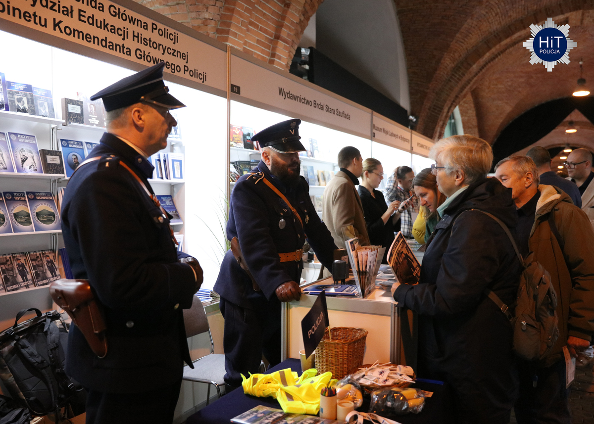 W XXXIII Targach Książki Historycznej w Arkadach Kubickiego Zamku Królewskiego w Warszawie swoje stoisko przygotował Wydział Edukacji Historycznej Gabinetu Komendanta Głównego Policji. Prezentowaliśmy nasze publikacje, które cieszyły się dużym powodzeniem, częstowaliśmy policyjnymi krówkami i lizakami, ale tym co najbardziej przyciągało odwiedzających byli nasi koledzy w mundurach Policji Państwowej wz. 36. Jak podkreślili uczestnicy targów „nasze stoisko trudno było przeoczyć”. Zatrzymywali się przy nim wszyscy, którzy chcieli zgłębić wiedzę na temat historii formacji policyjnych, posłuchać ciekawostek z okresu dwudziestolecia międzywojennego czy nauczyć się rozróżniać uniformy przodownika Policji Państwowej i aspiranta PP. Przy naszym stoisku spotykali się policjanci, ich rodziny, emeryci policyjni i, co bardzo znamienne, potomkowie przedwojennych funkcjonariuszy. Nawiązaliśmy nowe kontakty, zaprosiliśmy do zwiedzenia naszej siedziby, umówiliśmy się na spotkania z tymi, którzy chcą podzielić się z nami wspomnieniami po swoich przodkach.