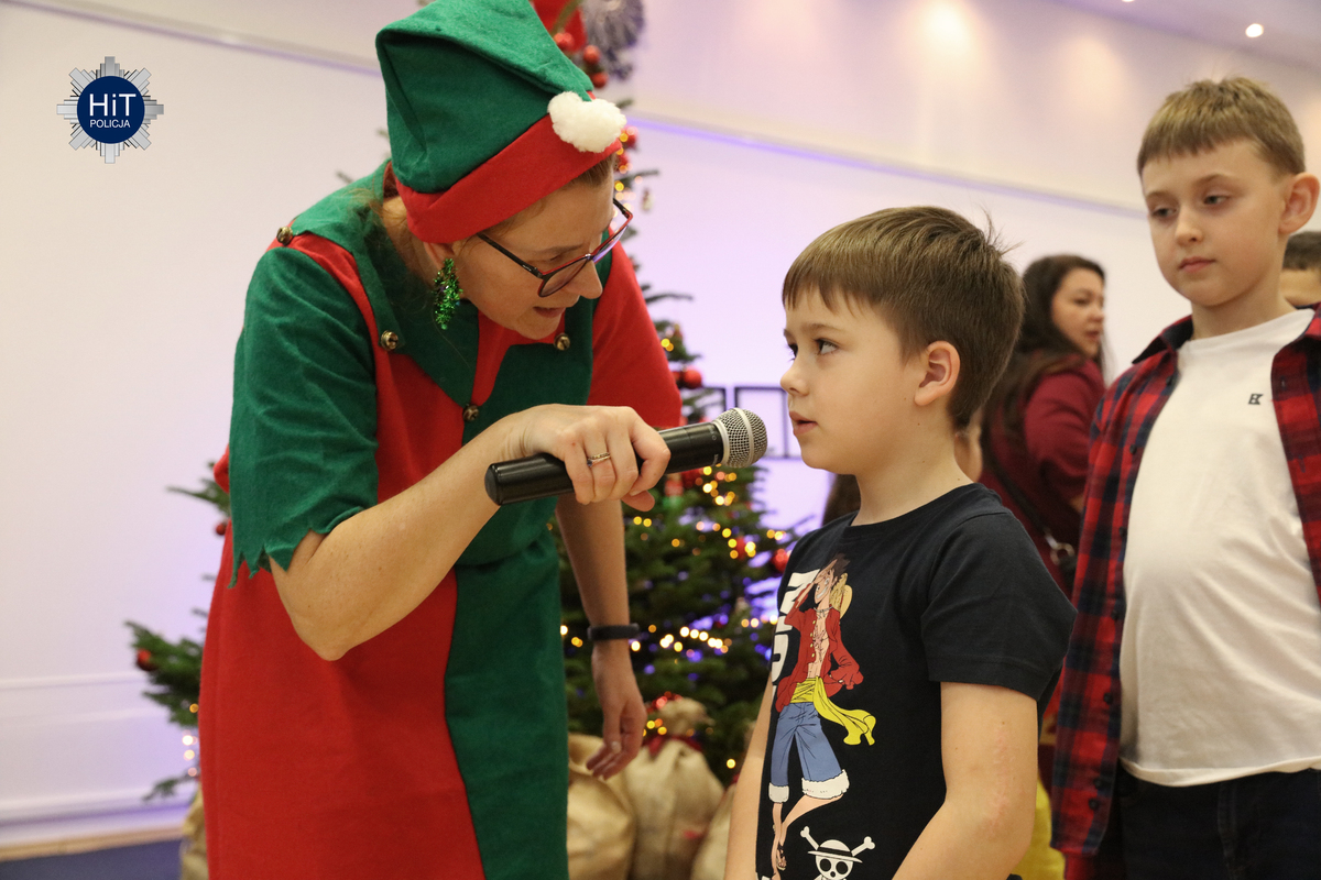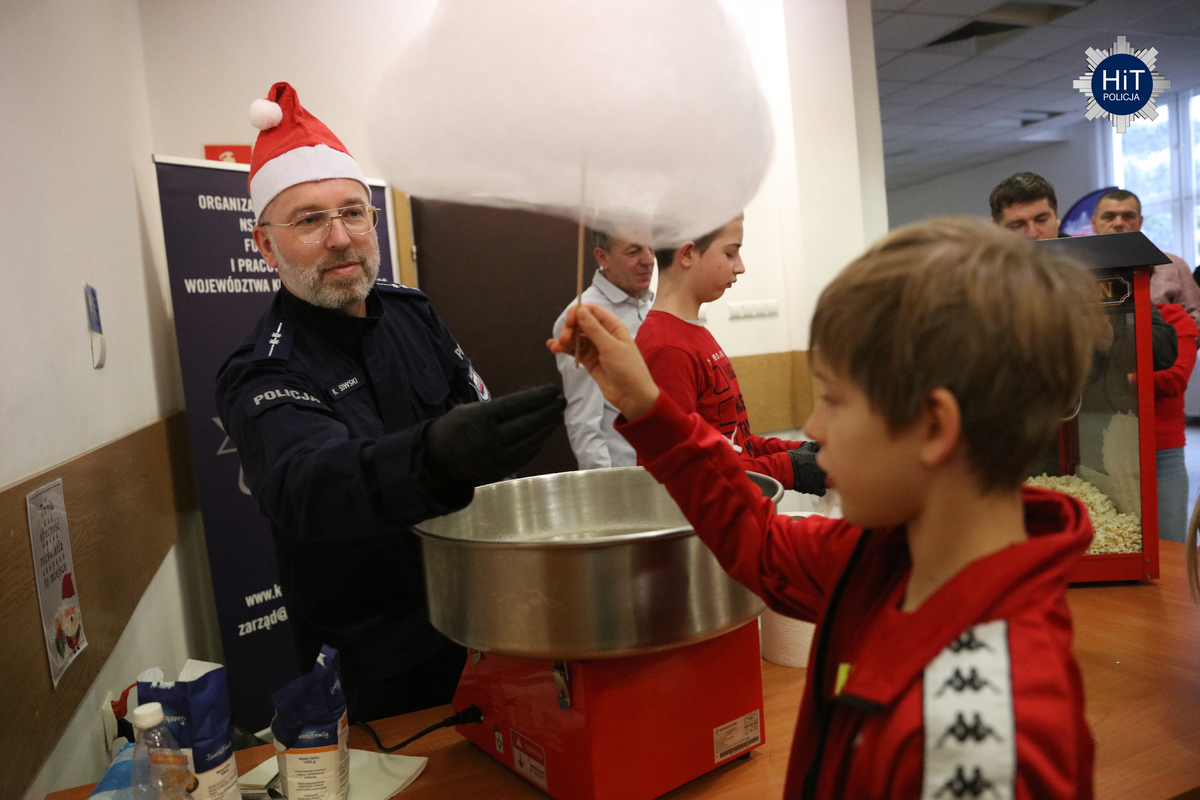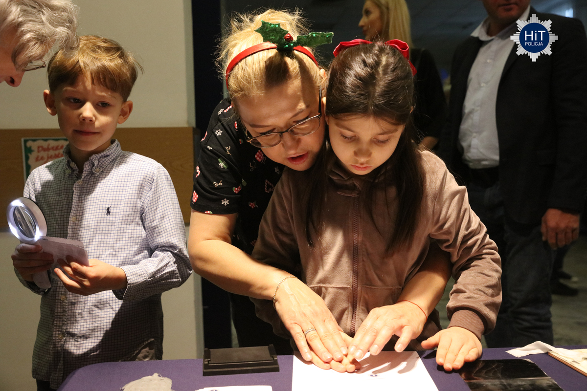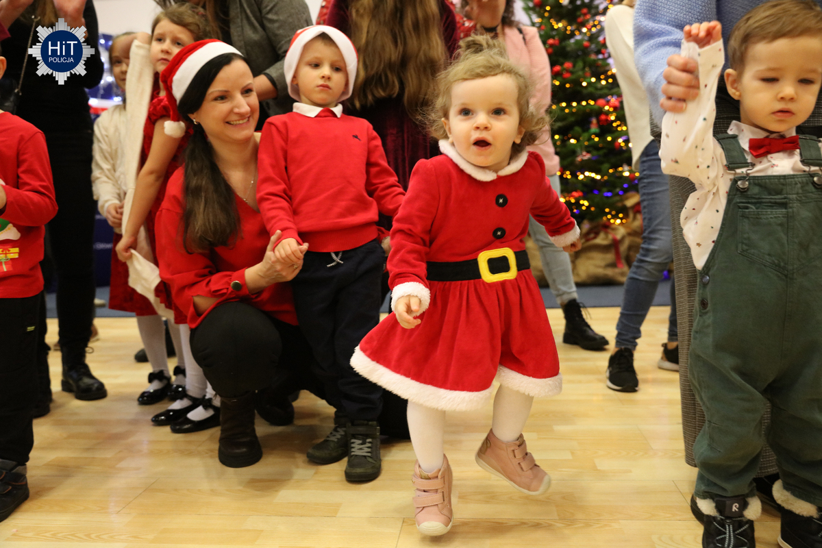 Milusińskich było ponad… pół tysiąca, więc mikołajkowe zabawy podzielone zostały na trzy grupy, w których przygotowano atrakcje adekwatne do wieku. Były więc wodne tatuaże, kolorowanki, zdobienie pierników, a dla starszych także tworzenie kartek świątecznych. Najbardziej wyczekiwanym gościem był Mikołaj, który miał do pomocy elfy: Fikusia, Migotka i Śmieszka. Zjawił się nawet jednorożec, który trochę napsocił, a dzieci pomagały w uspokojeniu go i opanowaniu chaosu w fabryce prezentów. Przeprowadzono konkurs na odgadywanie tytułów piosenek oraz kolęd, na parkiecie królowały tańce, a prowadzący proponowali mnóstwo zabaw integracyjnych. W mikołajkową sobotę w KGP można było spotkać maskotki policyjne, przewodników z psami służbowymi, specjalsów z Centralnego Pododdziału Kontrterrorystycznego Policji „BOA” oraz funkcjonariuszy z Centralnego Laboratorium Kryminalistycznego Policji z walizką daktyloskopijną. Niespodzianką, także dla rodziców była wizyta Komendanta Głównego Policji gen. insp. Marka Boronia, który wziął udział w świątecznym spotkaniu. Czas umilali muzycy z Orkiestry Reprezentacyjnej Policji. Na spragnionych i złaknionych czekały napoje i małe co nieco, przygotowane przez związkowców z NSZZ „Solidarność”.