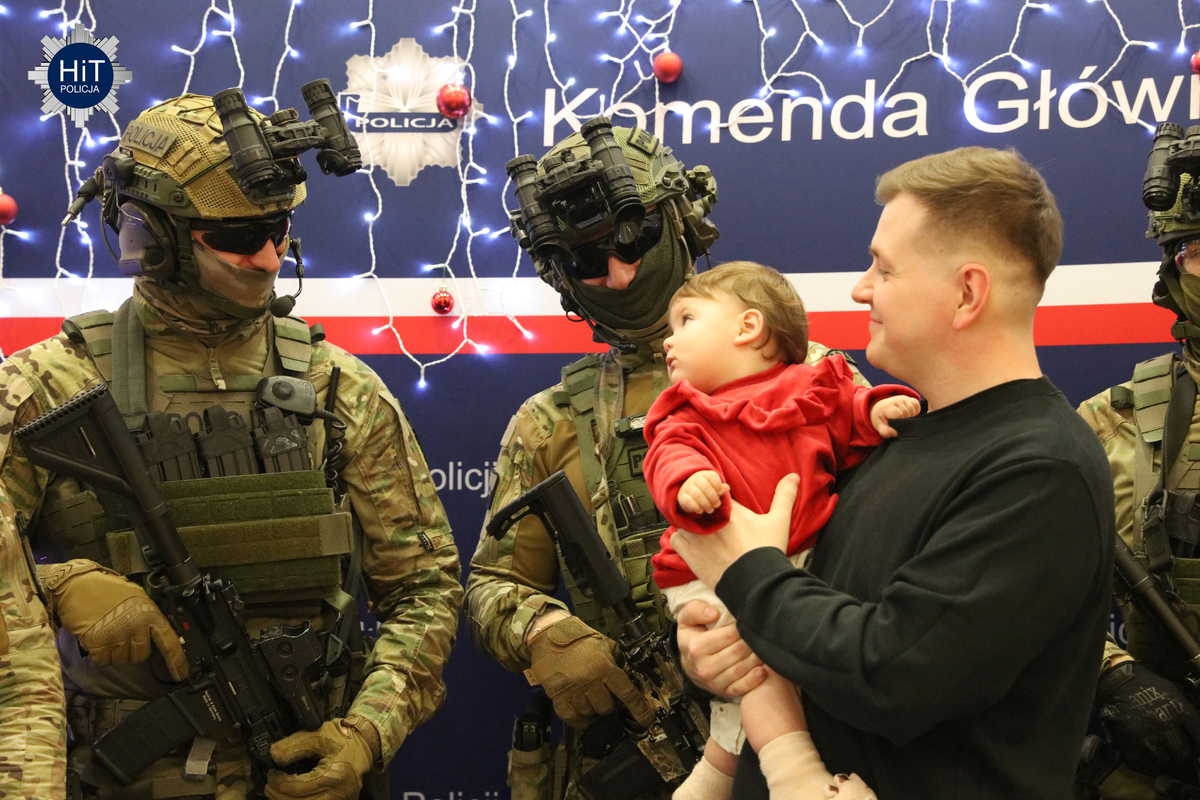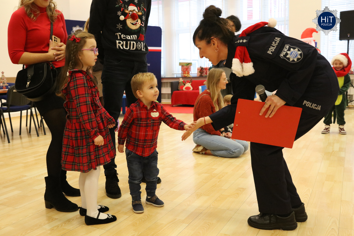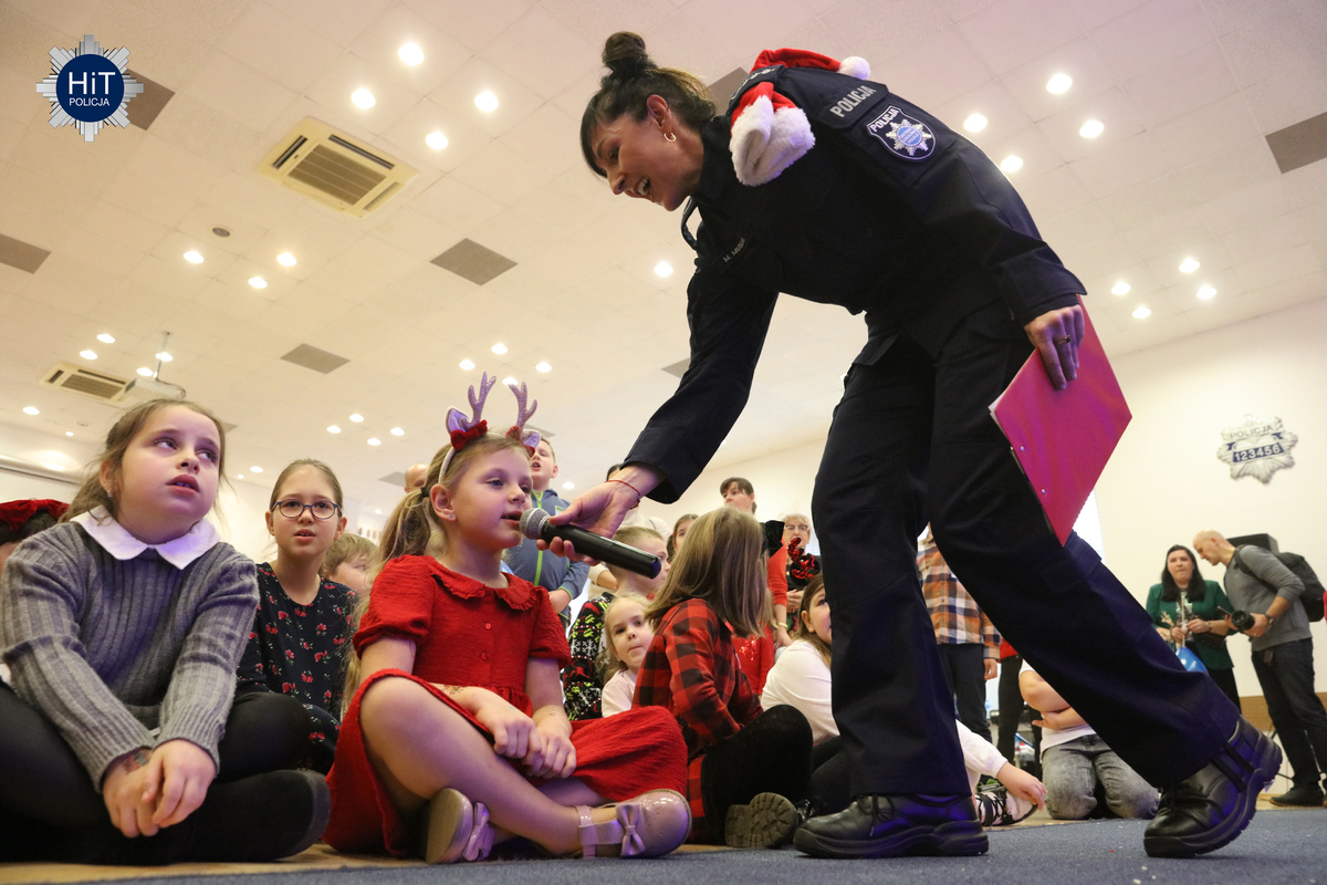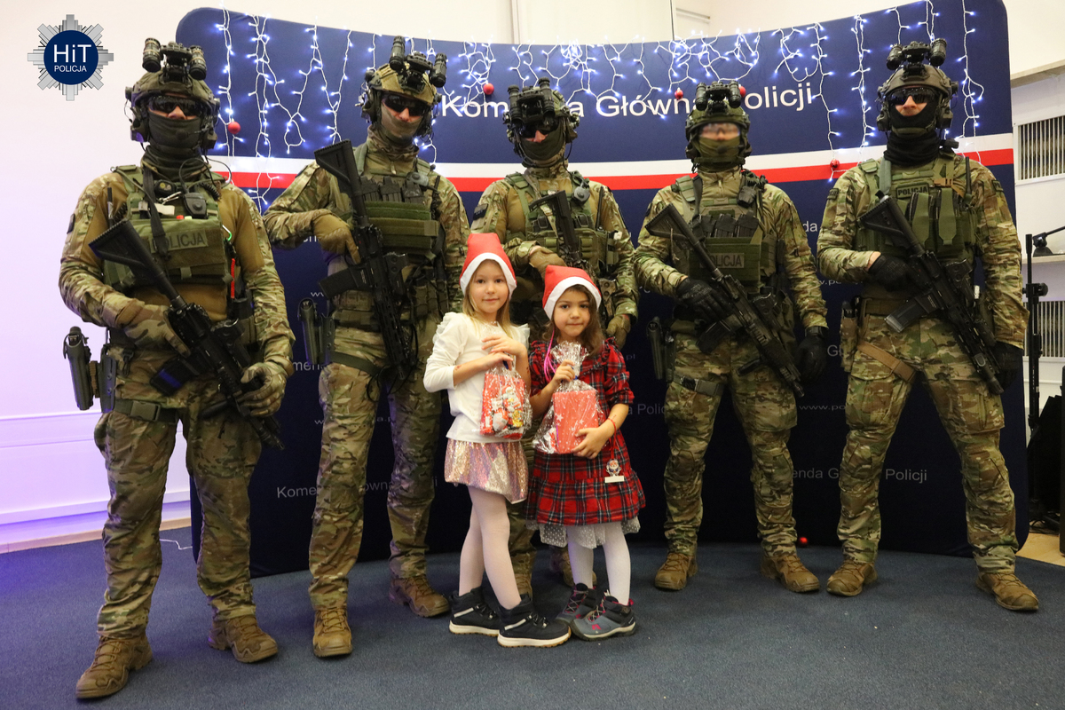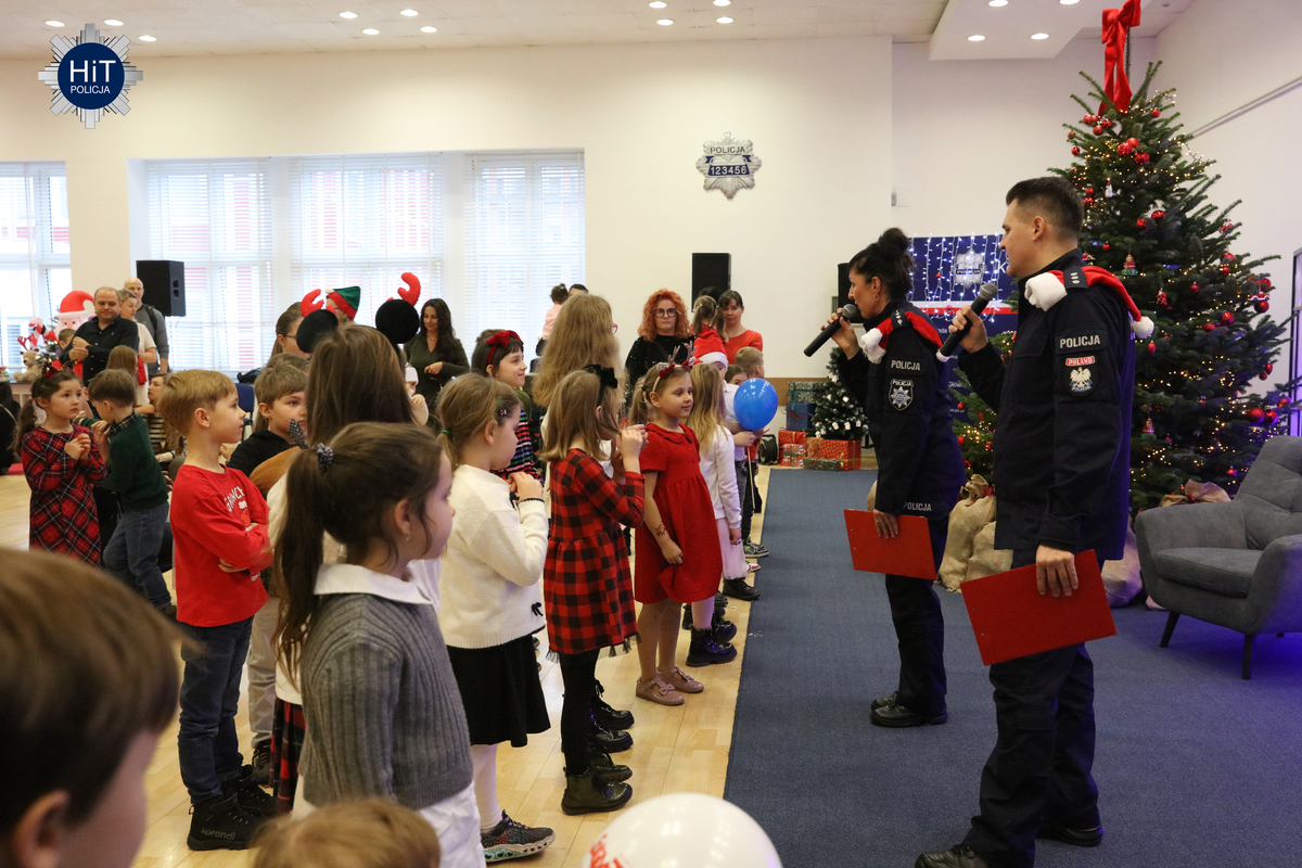 Milusińskich było ponad… pół tysiąca, więc mikołajkowe zabawy podzielone zostały na trzy grupy, w których przygotowano atrakcje adekwatne do wieku. Były więc wodne tatuaże, kolorowanki, zdobienie pierników, a dla starszych także tworzenie kartek świątecznych. Najbardziej wyczekiwanym gościem był Mikołaj, który miał do pomocy elfy: Fikusia, Migotka i Śmieszka. Zjawił się nawet jednorożec, który trochę napsocił, a dzieci pomagały w uspokojeniu go i opanowaniu chaosu w fabryce prezentów. Przeprowadzono konkurs na odgadywanie tytułów piosenek oraz kolęd, na parkiecie królowały tańce, a prowadzący proponowali mnóstwo zabaw integracyjnych. W mikołajkową sobotę w KGP można było spotkać maskotki policyjne, przewodników z psami służbowymi, specjalsów z Centralnego Pododdziału Kontrterrorystycznego Policji „BOA” oraz funkcjonariuszy z Centralnego Laboratorium Kryminalistycznego Policji z walizką daktyloskopijną. Niespodzianką, także dla rodziców była wizyta Komendanta Głównego Policji gen. insp. Marka Boronia, który wziął udział w świątecznym spotkaniu. Czas umilali muzycy z Orkiestry Reprezentacyjnej Policji. Na spragnionych i złaknionych czekały napoje i małe co nieco, przygotowane przez związkowców z NSZZ „Solidarność”.