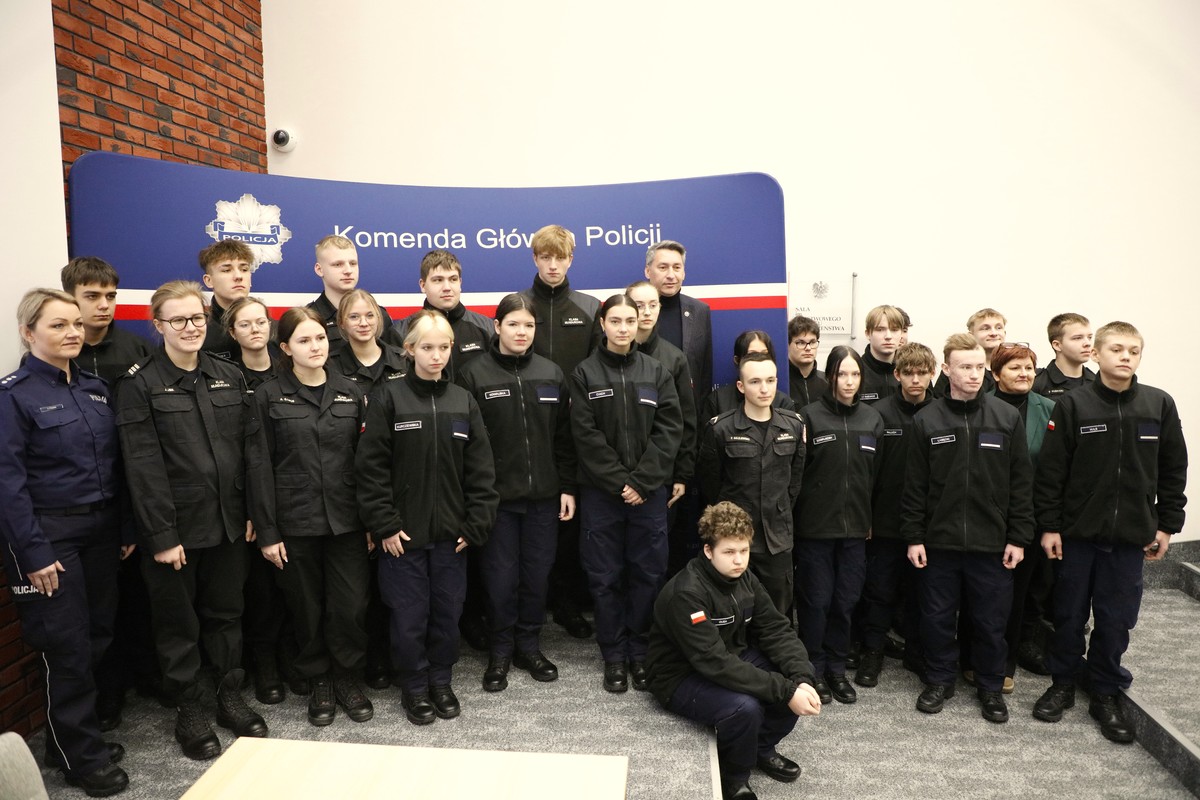 „Z wyrazami najwyższego szacunku i uznania dla służby pełnionej na rzecz bezpieczeństwa państwa oraz budowania zaufania społecznego do Policji, a także za inspirowanie młodego pokolenia do postaw opartych na odpowiedzialności, dyscyplinie i poszanowaniu prawa – Dyrekcja, nauczyciele oraz uczniowie Klas Mundurowych Liceum Ogólnokształcącego im. Jana Karskiego w Wiśniowej Górze”. Tego się nie spodziewaliśmy, sympatyczni goście z pewnością również. My zaskoczeni byliśmy tym niezwykle miłym wpisem do Księgi Pamiątkowej Gości Wydziału, gdzie dedykacje zostawiają zwiedzający nasze ekspozycje, a goście z Wiśniowej Góry spontanicznym spotkaniem z Komendantem Głównym Policji.