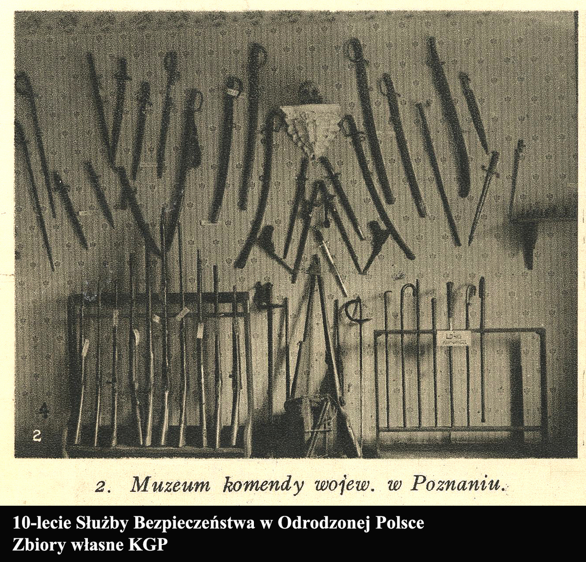 „Z gabinetu komendanta głównego udał się Pan Prezydent na parter do organizującego się muzeum policji państwowej. Po wejściu Pana Prezydenta do sal muzealnych p. komendant główny przedstawił Dostojnemu Gościowi członków komisji muzealnej. W muzeum p. komendant główny udzielał Panu Prezydentowi objaśnień o eksponatach, oglądanych przez Dostojnego Gościa ze szczególnym zainteresowaniem. Specjalnie Pan Prezydent zwrócił uwagę na eksponaty z działu kryminologicznego, mianowicie fabrykę fałszywych dolarów amerykańskich, maszynkę do sztancowania fałszywych 5-złotówek, przyrządy do odlewu w gipsie fałszywych 2-złotówek, drabinkę zrobioną przez więźnia z prześcieradeł, po której uciekł z więzienia, następnie broń i narzędzia przestępców, a przedewszystkiem misternie wykonaną laskę-karabinek, prymitywną laskę-strzelbę kłusownika oraz szereg innych nader ciekawych obiektów.”