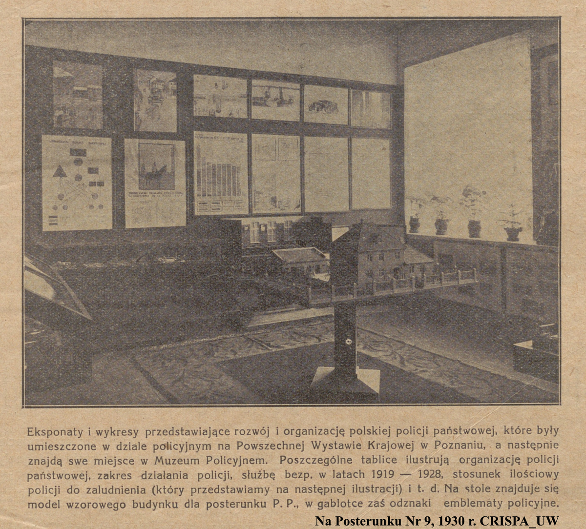W 1929 r. w Poznaniu odbyła się Powszechna Wystawa Krajowa. Policja Państwowa obecna była ze swoim stoiskiem wystawienniczym, na którym prezentowane były plansze informacyjne oraz dydaktyczne, wybrane eksponaty z Muzeum Kryminologicznego oraz makiety które w przyszłości zasilić miały zasoby Muzeum Policji.