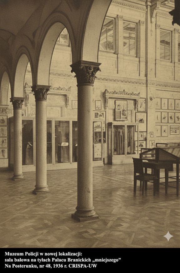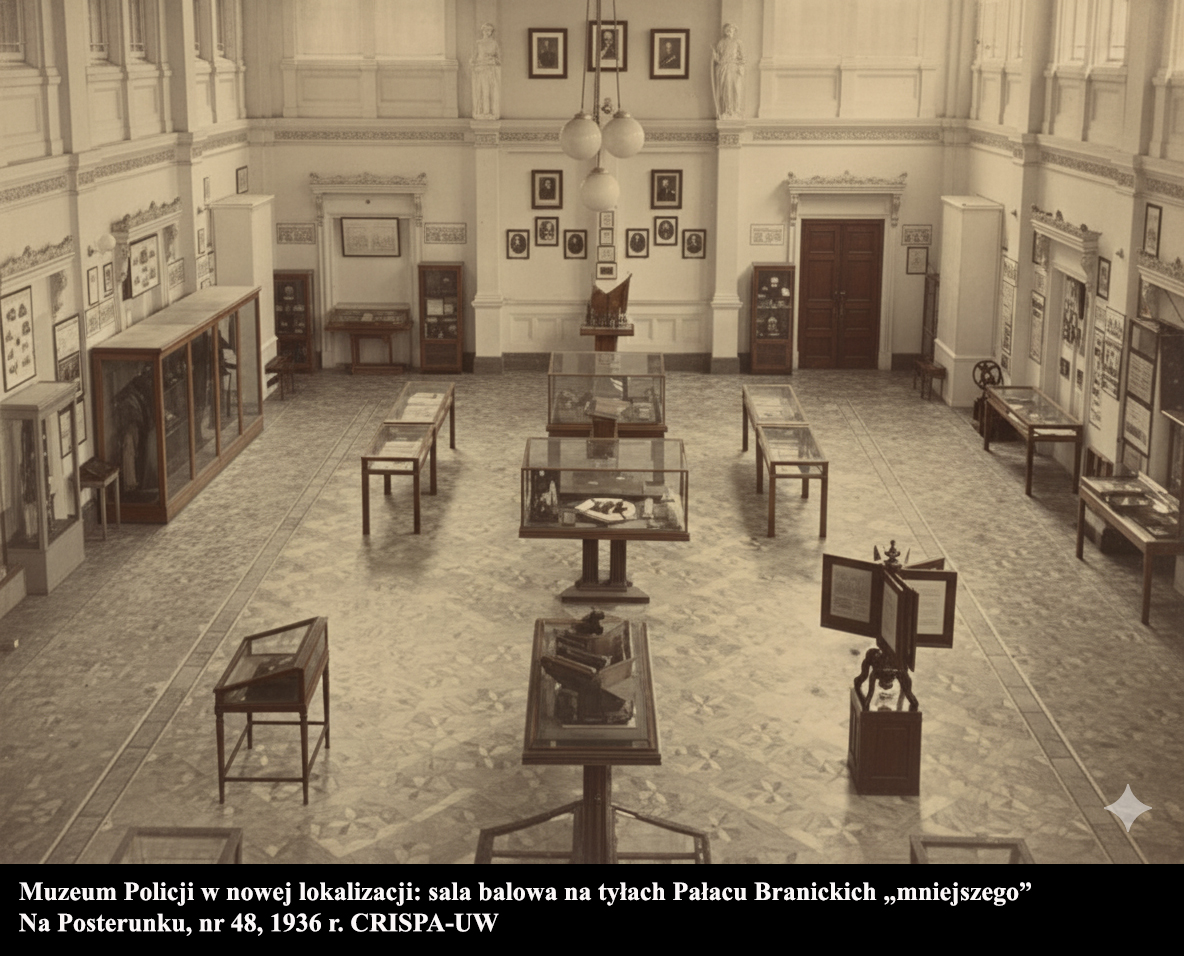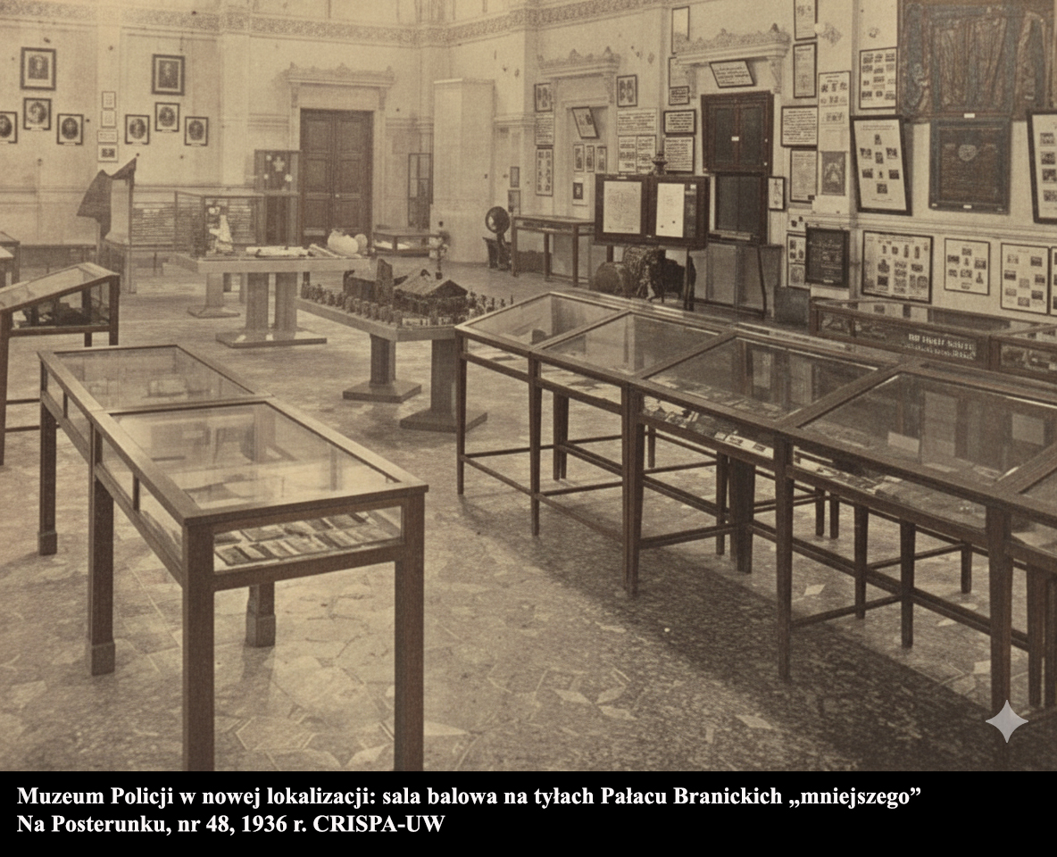 Do sali balowej na tyłach Klubu Oficerów Policji Państwowej zostało przeniesione Muzeum Policyjne i podjęło działalność w nowej lokalizacji w listopadzie 1936 roku. Wszystkie obiekty muzealne, manekiny z mundurami, makiety, gabloty z eksponatami, tablice, obrazy, zdjęcia znalazły się w nowym dużym pomieszczeniu.