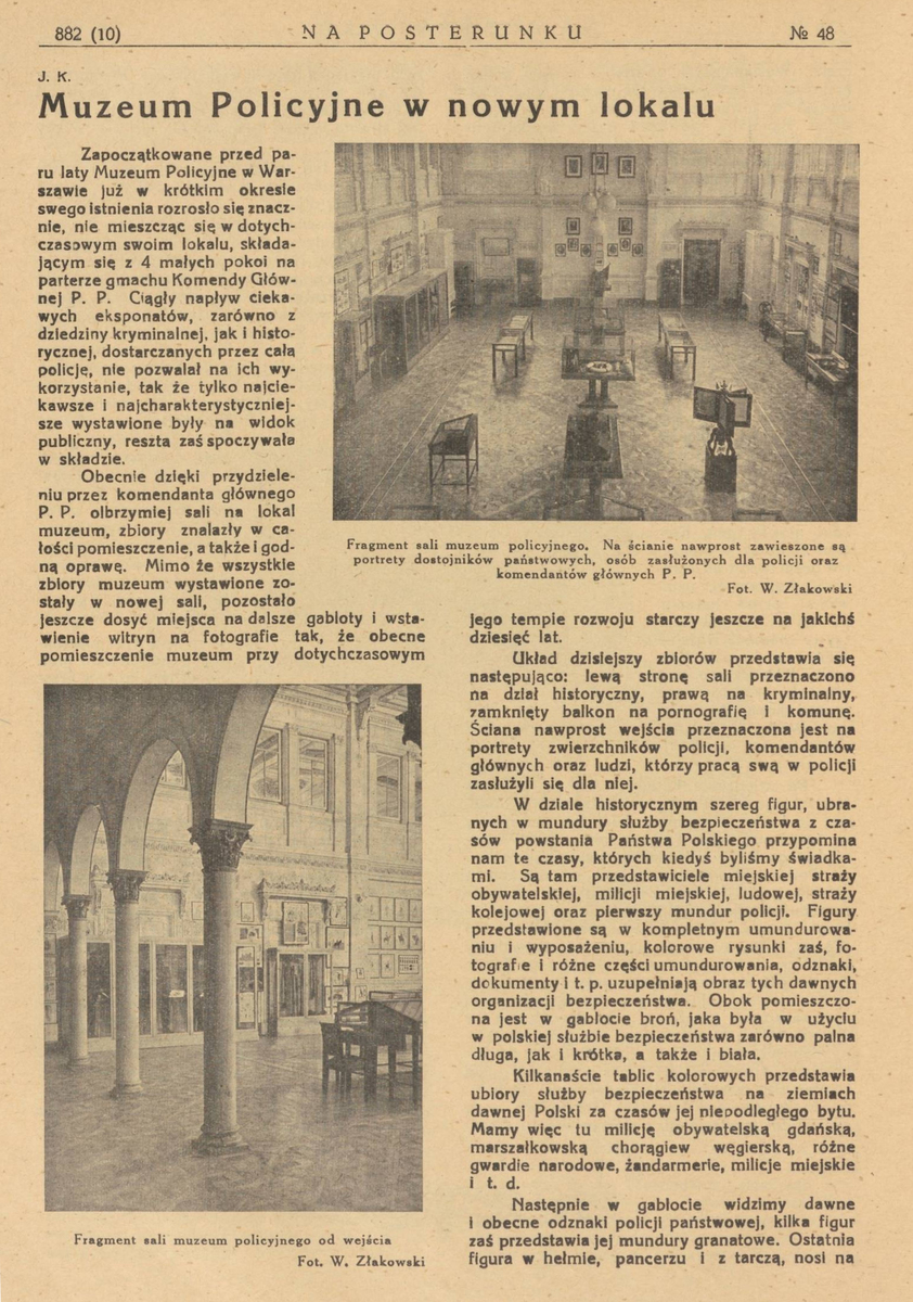 J.K., Muzeum Policyjne w nowym lokalu. „Na posterunku”, nr 48, 1936 r. str. 10 – 12, CRISPA-UW