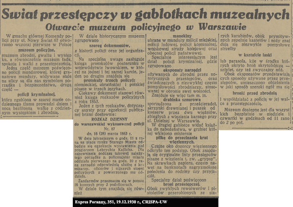 O Muzeum Policji Express Poranny. nr 351, 19 grudnia 1930 r., CRISPA-UW