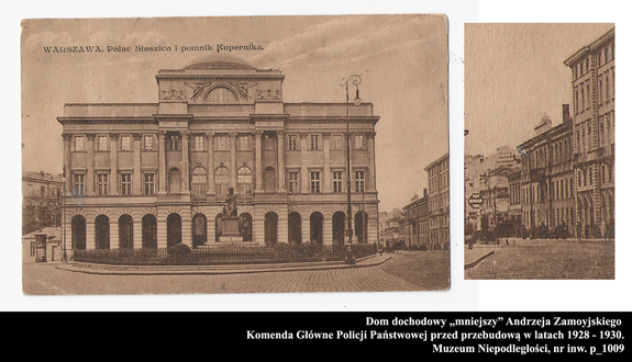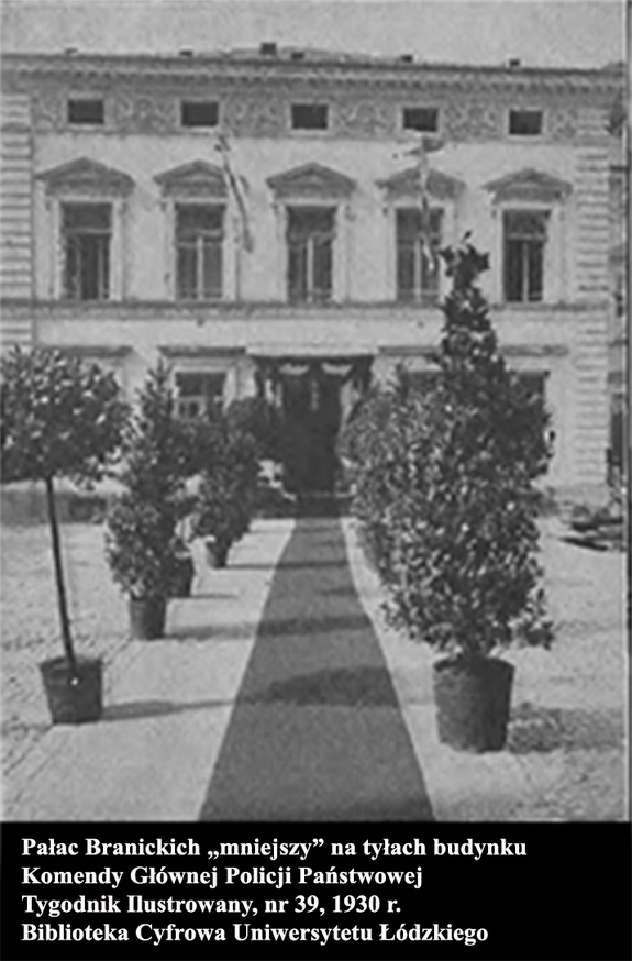 W 1936 r. Komenda Główna Policji Państwowej przy ulicy Nowy Świat 67 wzbogaciła się o kolejny budynek, jakim był tzw. Pałac Branickich „mniejszy”. Budynek znajdował się w głębi posesji i traktowany był jako oficyna gmachu, w którym swoją siedzibę miała Komenda Główna Policji Państwowej. Mieścił się w nim dotychczas Klub Urzędników Państwowych. Na tyłach pałacu znajdował się ogród, dochodzący do oficyn kamienic, położonych przy ulicy Czackiego. Od strony ogrodu do budynku przylegała sala balowa. Obecnie w tym miejscu znajduje się gmach Ministerstwa Finansów z adresem Świętokrzyska 12.