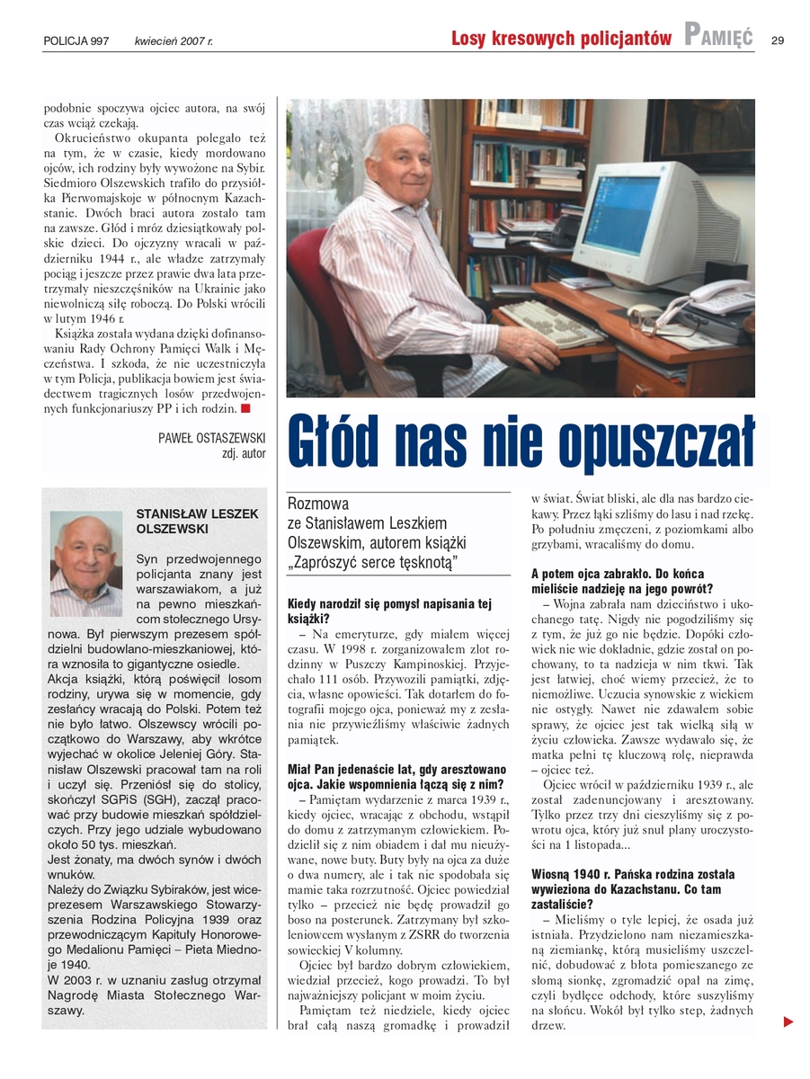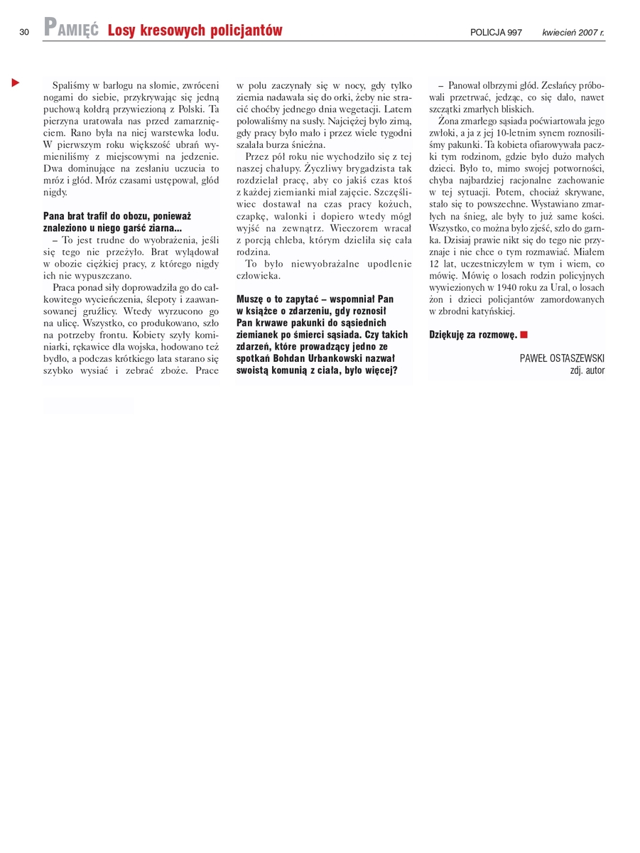 Paweł Ostaszewski, „Sięgnąć do źródeł” i „Głód nas nie opuszczał”, Magazyn „Policja 997” nr 4 (25), kwiecień 2007 r.