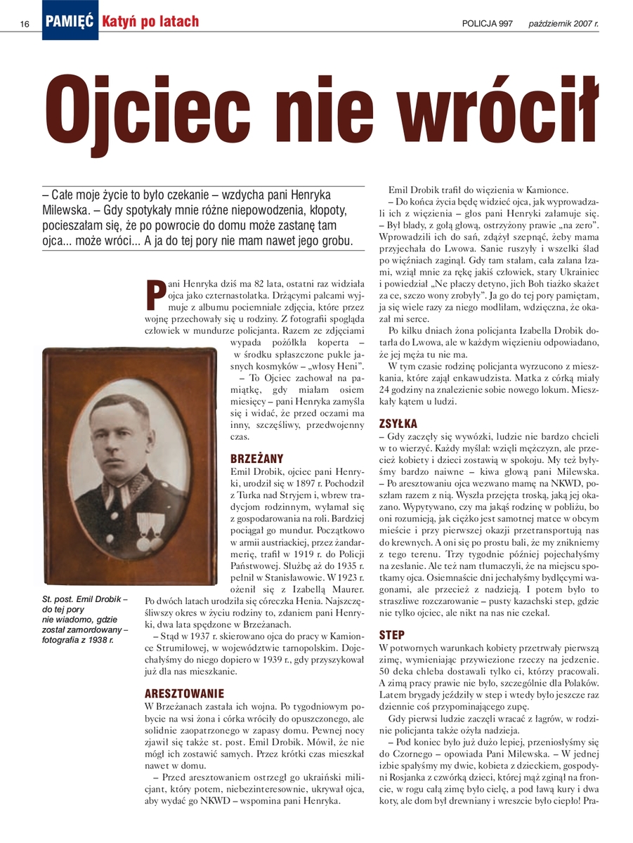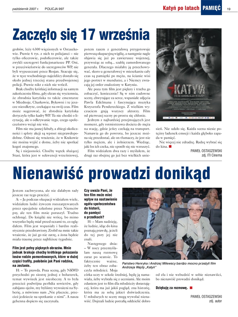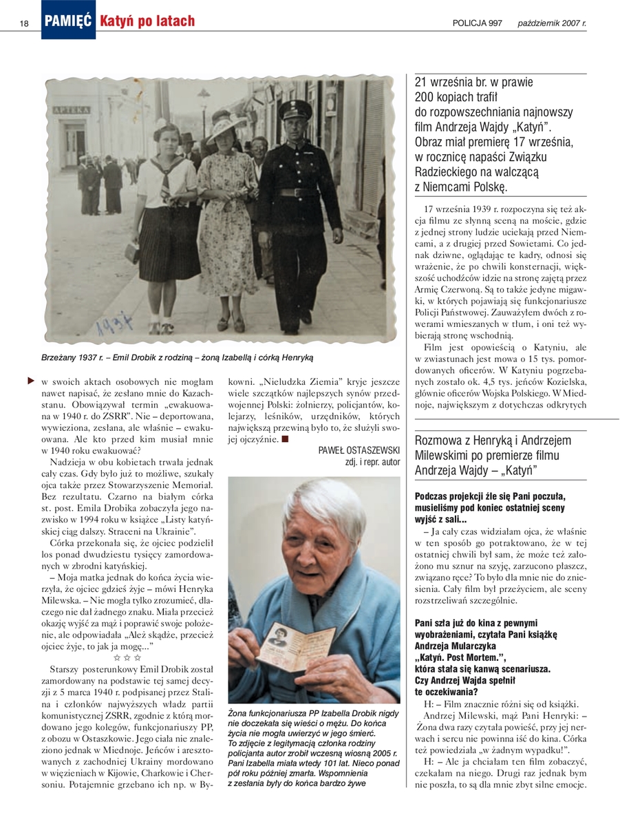Paweł Ostaszewski, „Ojciec nie wrócił”, „Zaczęło się 17 września” i „Nienawiść prowadzi donikąd”, Magazyn „Policja 997” nr 10 (31), październik 2007 r.