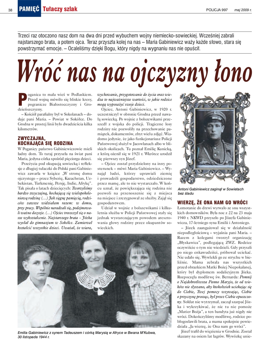 Paweł Ostaszewski, „Wróć nas na ojczyzny łono”, Magazyn „Policja 997” nr 5 (50), maj 2009 r.